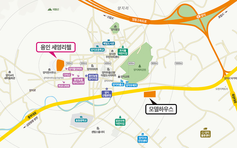 모델하우스는 양지면 양지리 485번지에 오는 7월 10일에 오픈할 예정이다.
