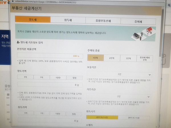 KB국민은행 사이트에서 종부세 계산