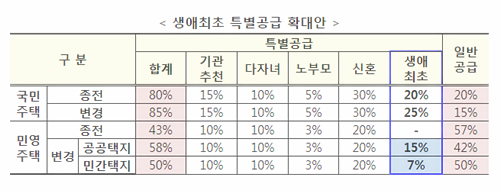 ① 생애최초 특별공급 확대