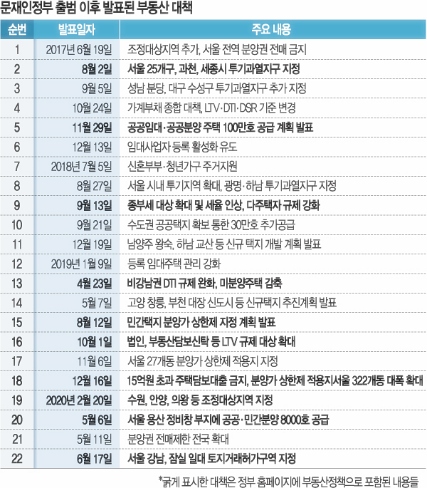크고 작은 부동산대책이 21차례였습니다.