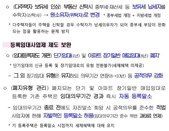 다주택자들이 주택을 신탁할 경우 수탁자가 납세의무자가 되어 종부세 부담이 완화되는 점을 활용하는 문제 방지등록임대사업제 제도 보완