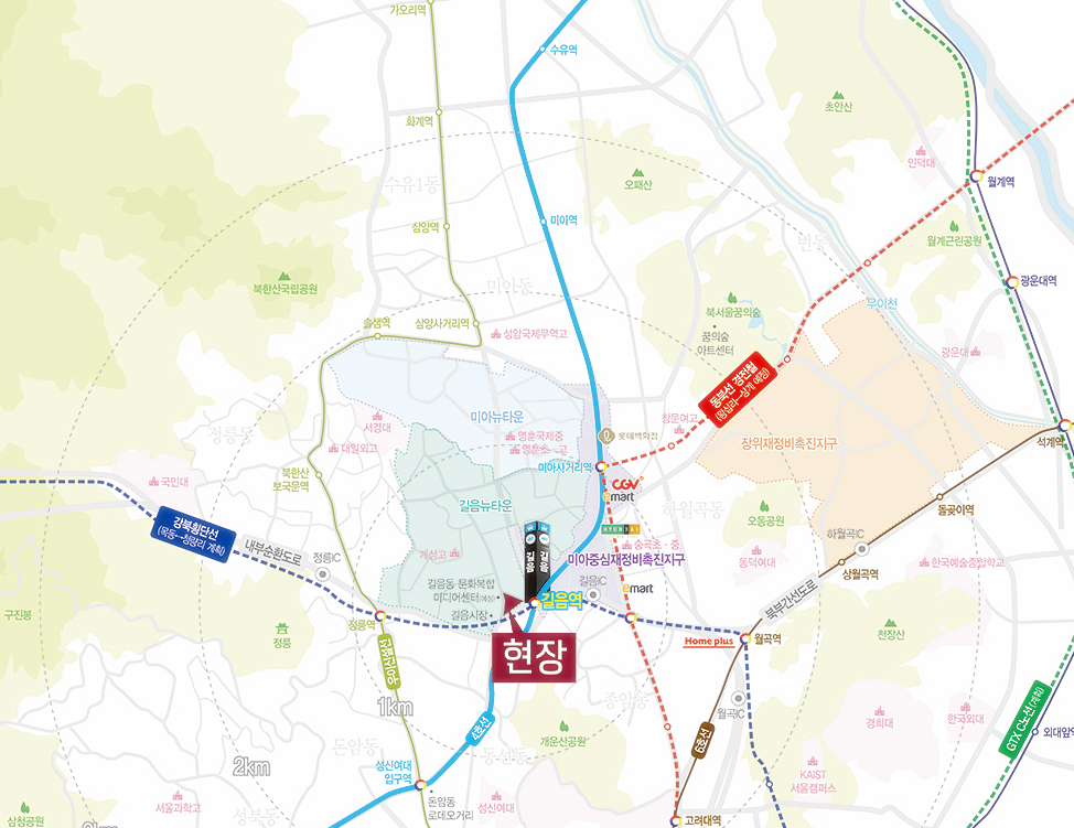풍부한 개발호재도 갖췄다. 작년 길음뉴타운은 사업이 성공적으로 마무리되며 2만가구 규모 신흥주거타운으로 자리매김했다. 여기에 길음뉴타운과 바로 맞닿은 1만 6,000여가구 규모의 미아뉴타운은 물론 길음역 인근의 신월곡1구역 재개발 사업도 활발히 진행되고 있다.