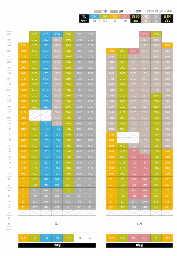 단지는 지하 5층~지상 35층 2개동, 전용면적 59, 84㎡ 총 395가구 규모로 조성된다. 전 가구가 수요자들의 선호도가 높은 전용면적 84㎡ 이하의 중소형으로 구성되며 이 중 약 55%에 해당하는 218세대를 일반에 분양한다.