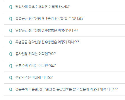 또한, 청약 분양가 분양시기 등 궁금하신 점은 공식 홈페이지 질문 코너에 올라와 있으니 확인해 보세요.