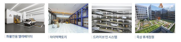 도어투도어(door-to-door) 시스템이 적용돼 원활한 물류 이송이 가능하며, 화물 전용 엘리베이터가 2기(3톤, 5톤) 설치돼 있다.